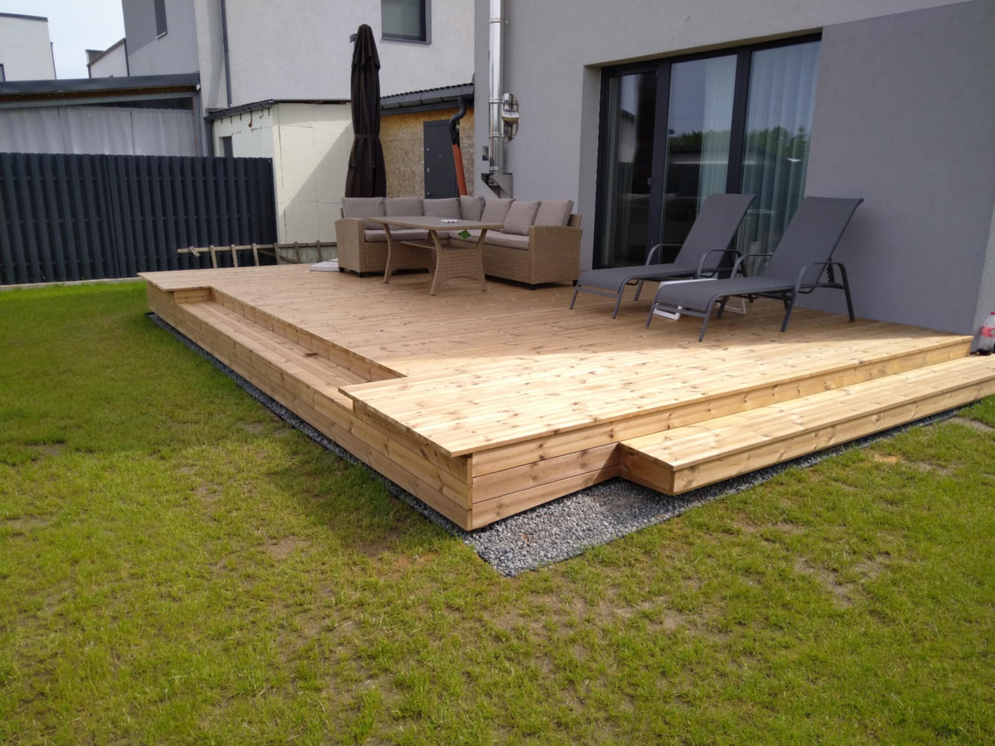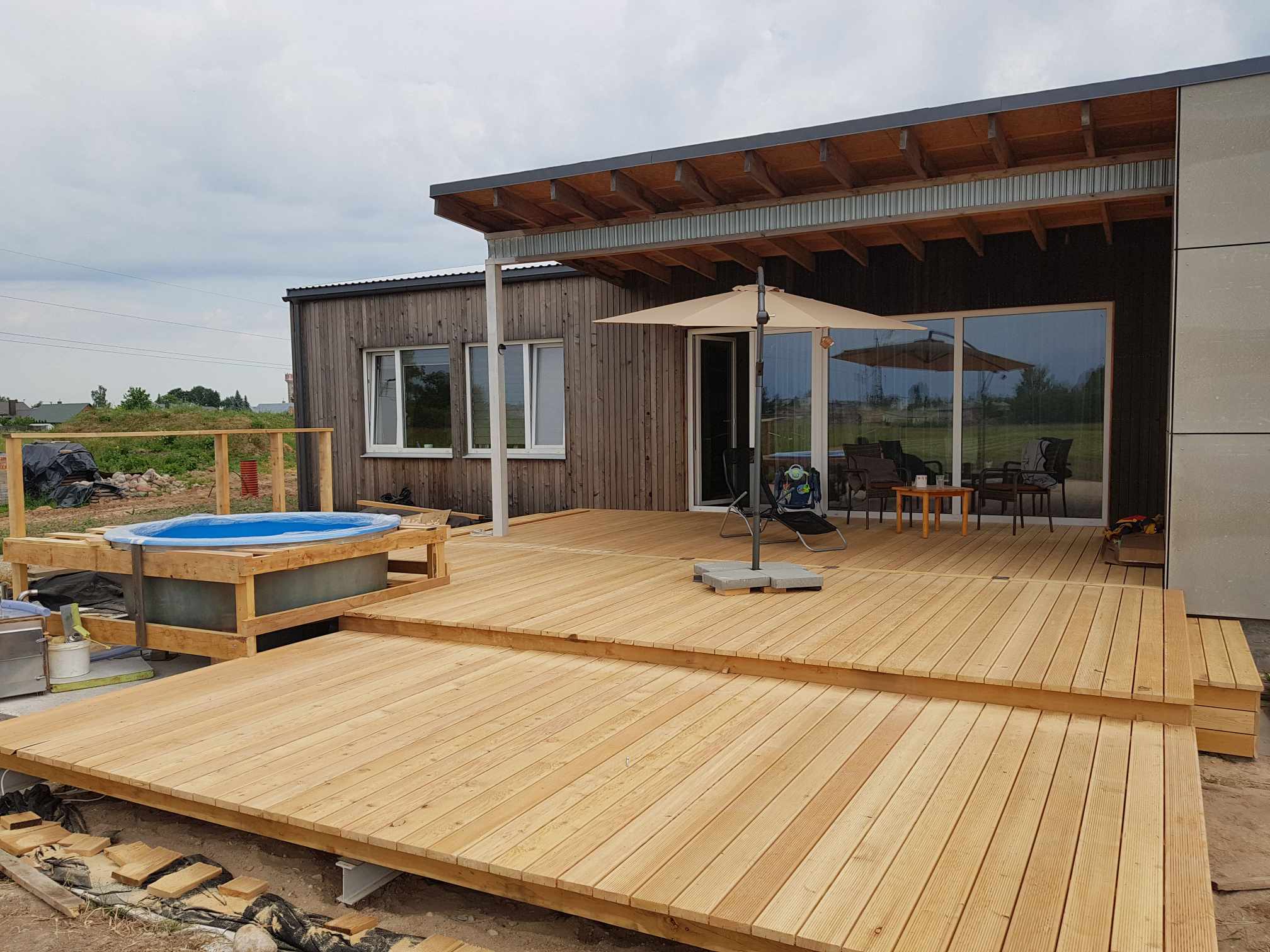 • Aukštos kokybės medžiagos: Naudojame ilgaamžes ir patikimas medžiagas, tokias kaip maumedis, termo mediena ar kompozitinės medžiagos.