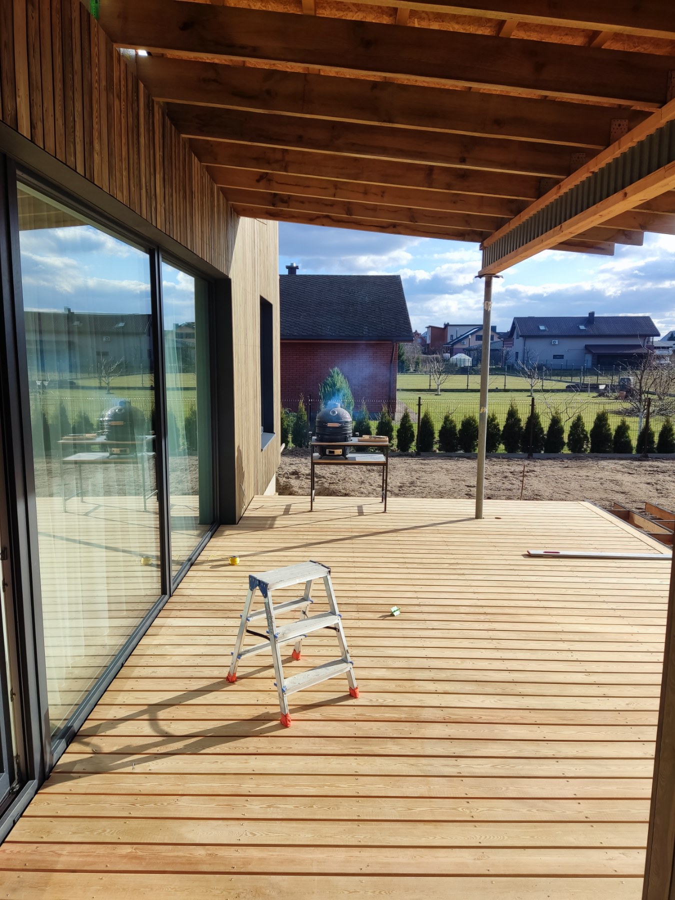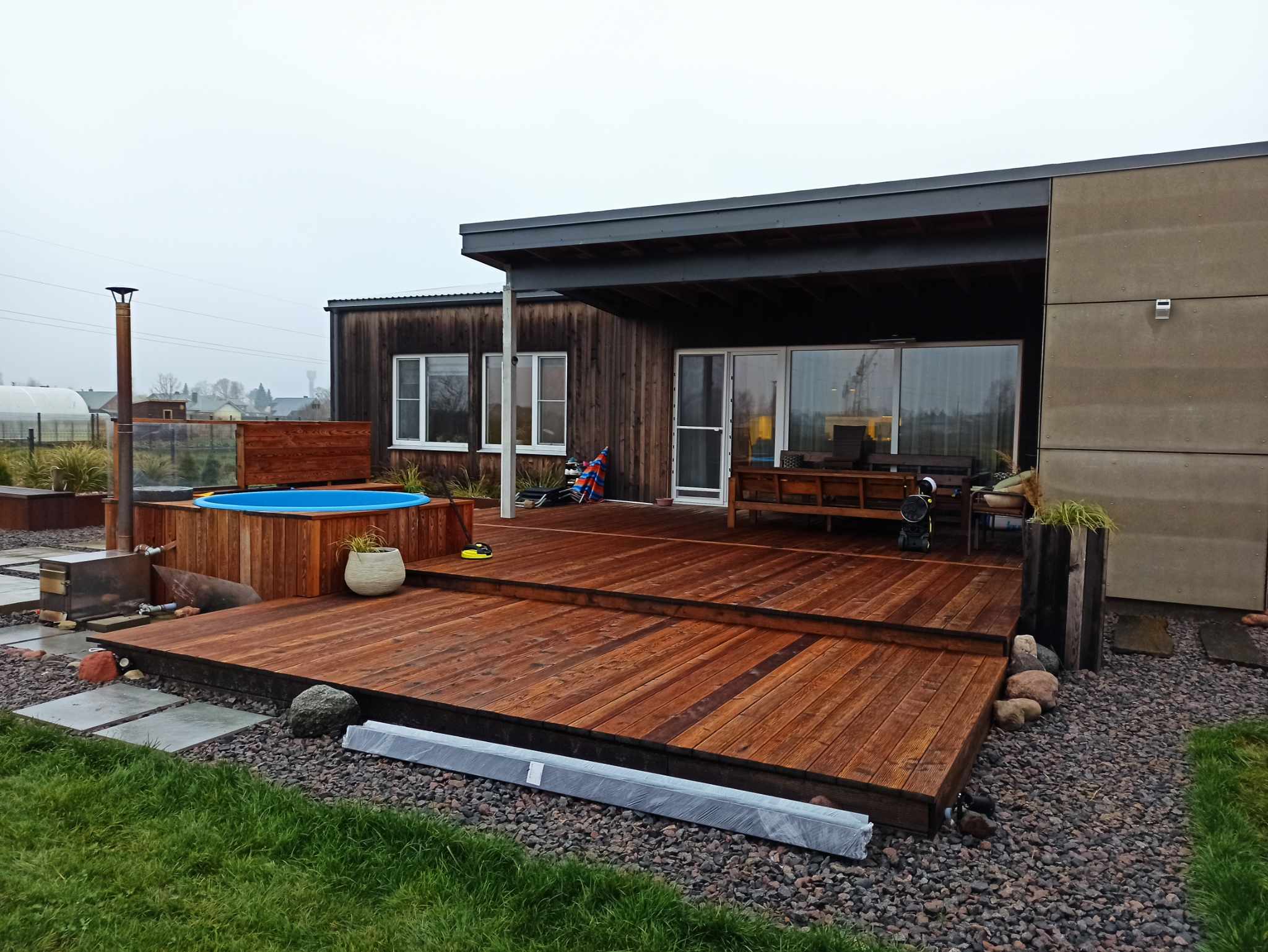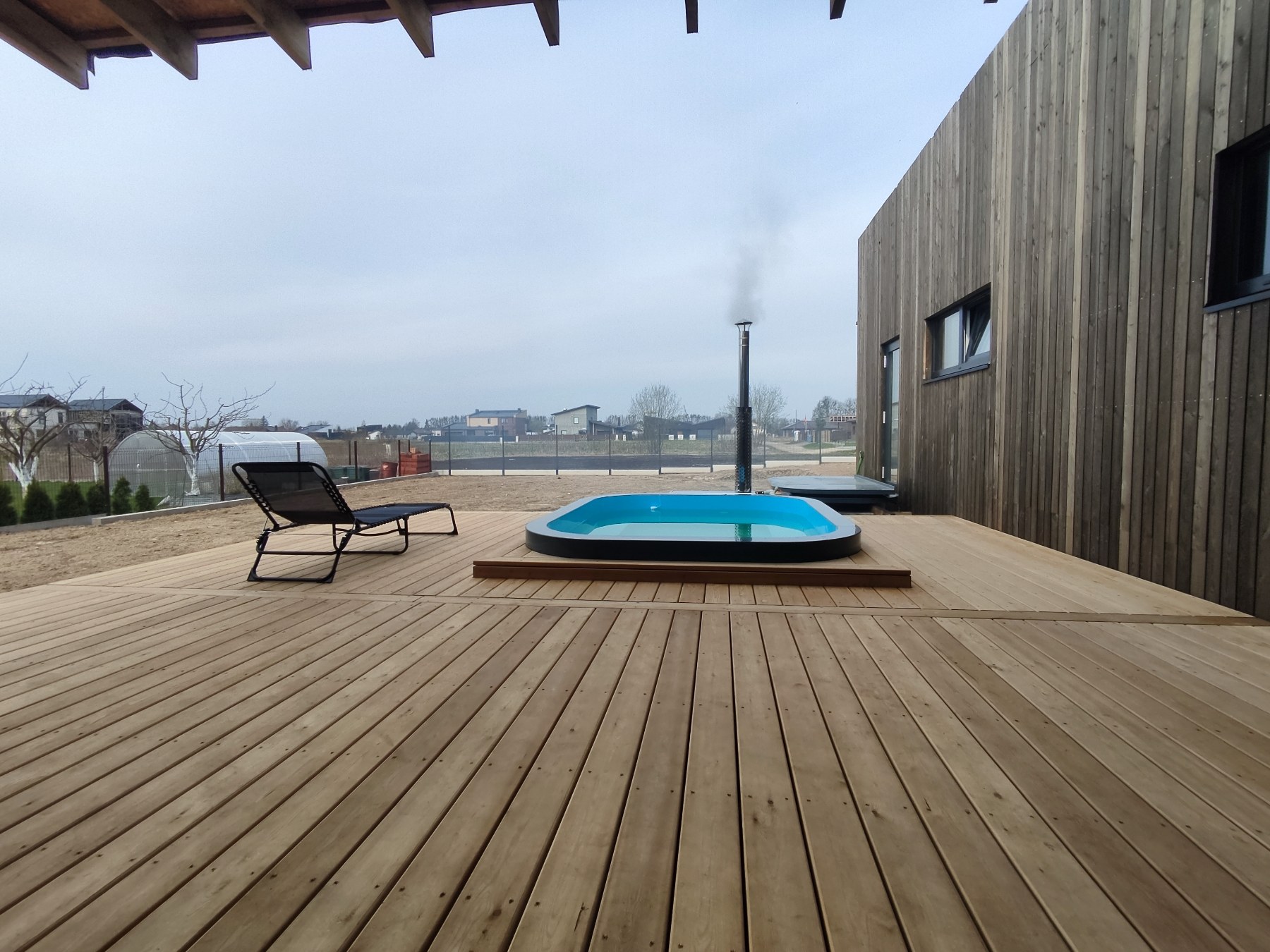 • Termo medienos terasos: Ekologiškas ir patvarus sprendimas, kuris neskyla, nesideformuoja ir nereikalauja sudėtingos priežiūros.