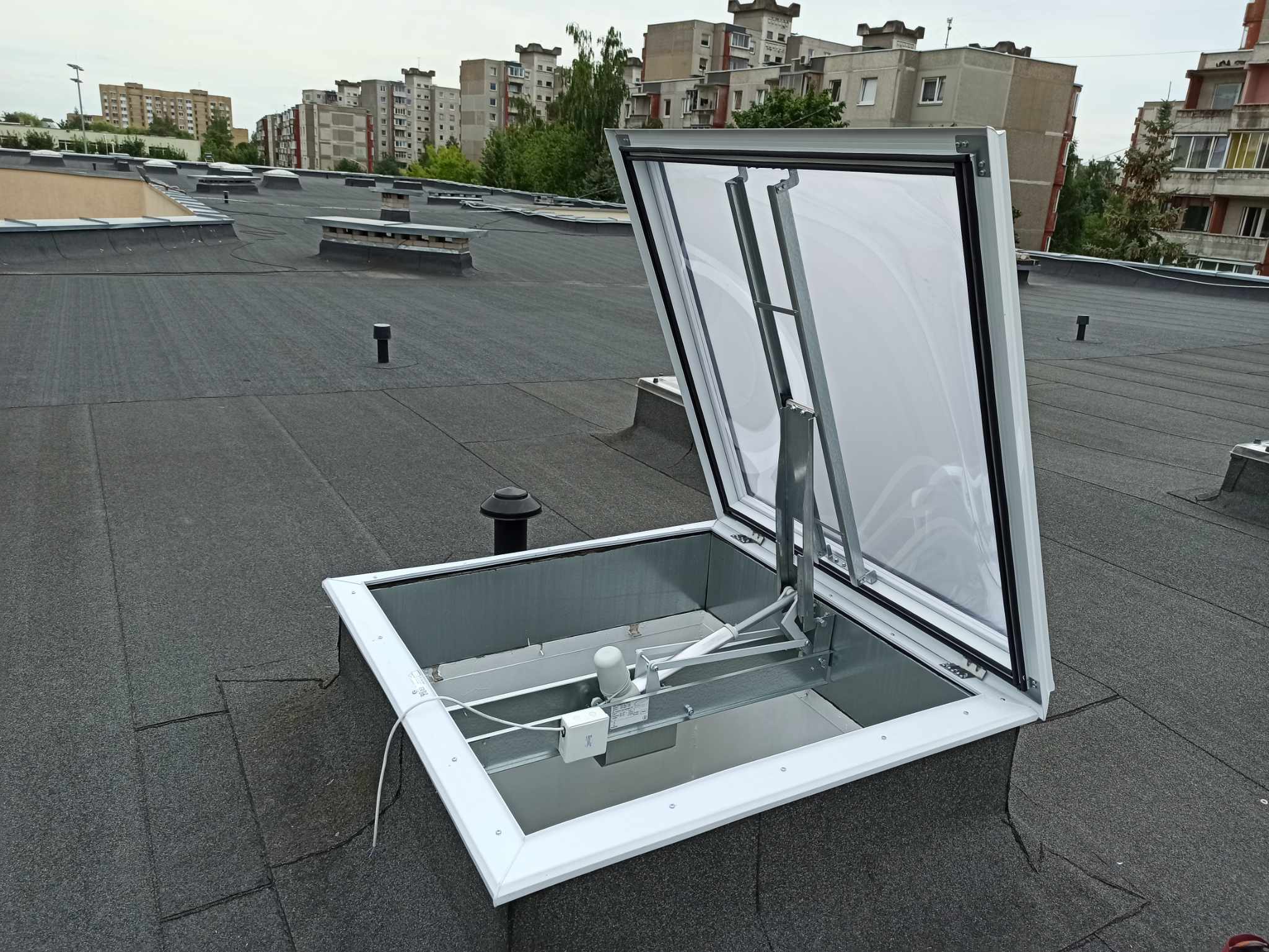 Mūsų komanda specializuojasi montuojant dūmų šalinimo stoglangius pramoniniams pastatams. Šie stoglangiai yra būtini, siekiant užtikrinti efektyvų dūmų ir karščio šalinimą gaisro atveju, taip pat prisideda prie pastato vėdinimo ir apšvietimo sprendimų.