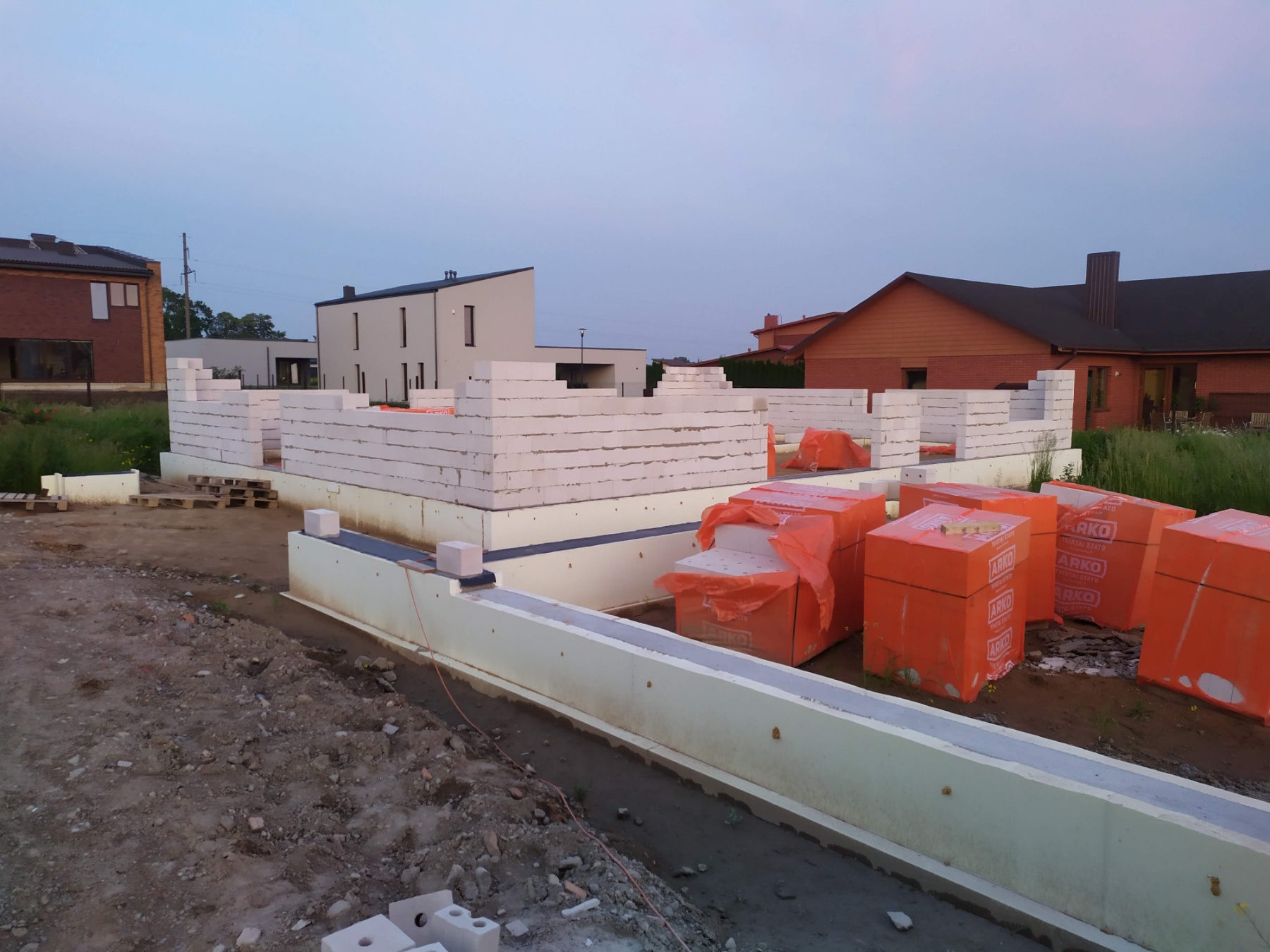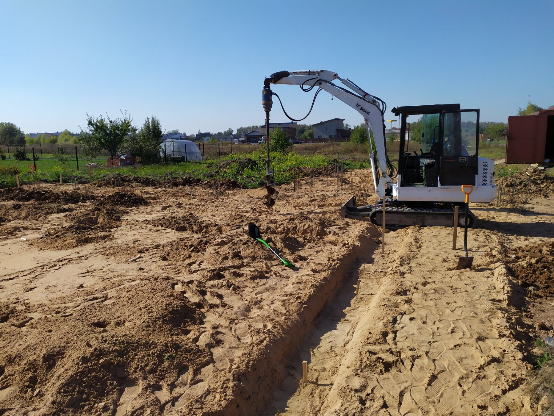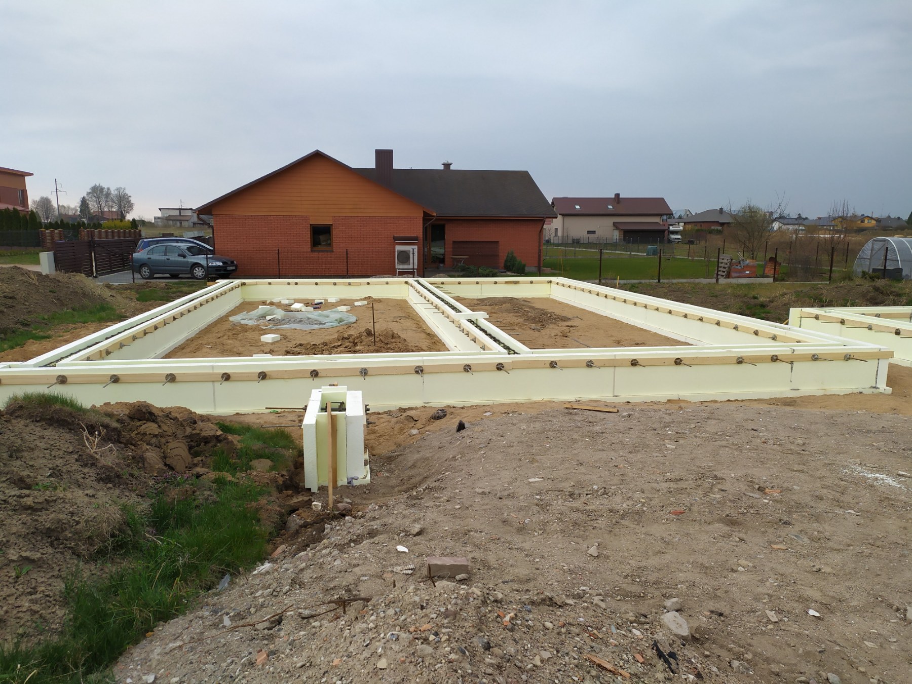 - Nuimamas augalinis sluoksnis, sutankinamas gruntas ir paruošiama komunikacijoms.