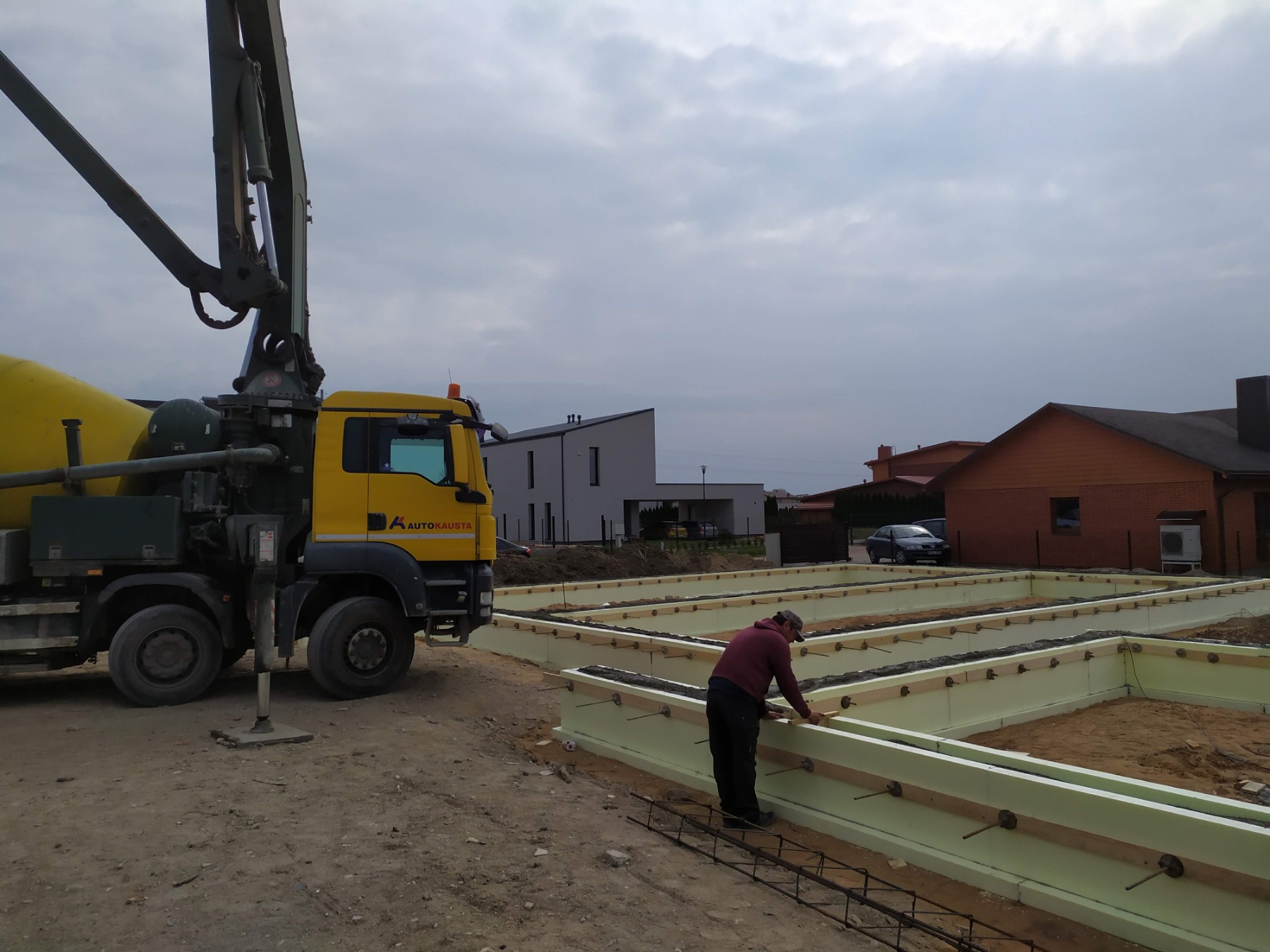 - Išliejama vientisa betoninė plokštė, užtikrinanti pamatų tvirtumą ir ilgaamžiškumą.